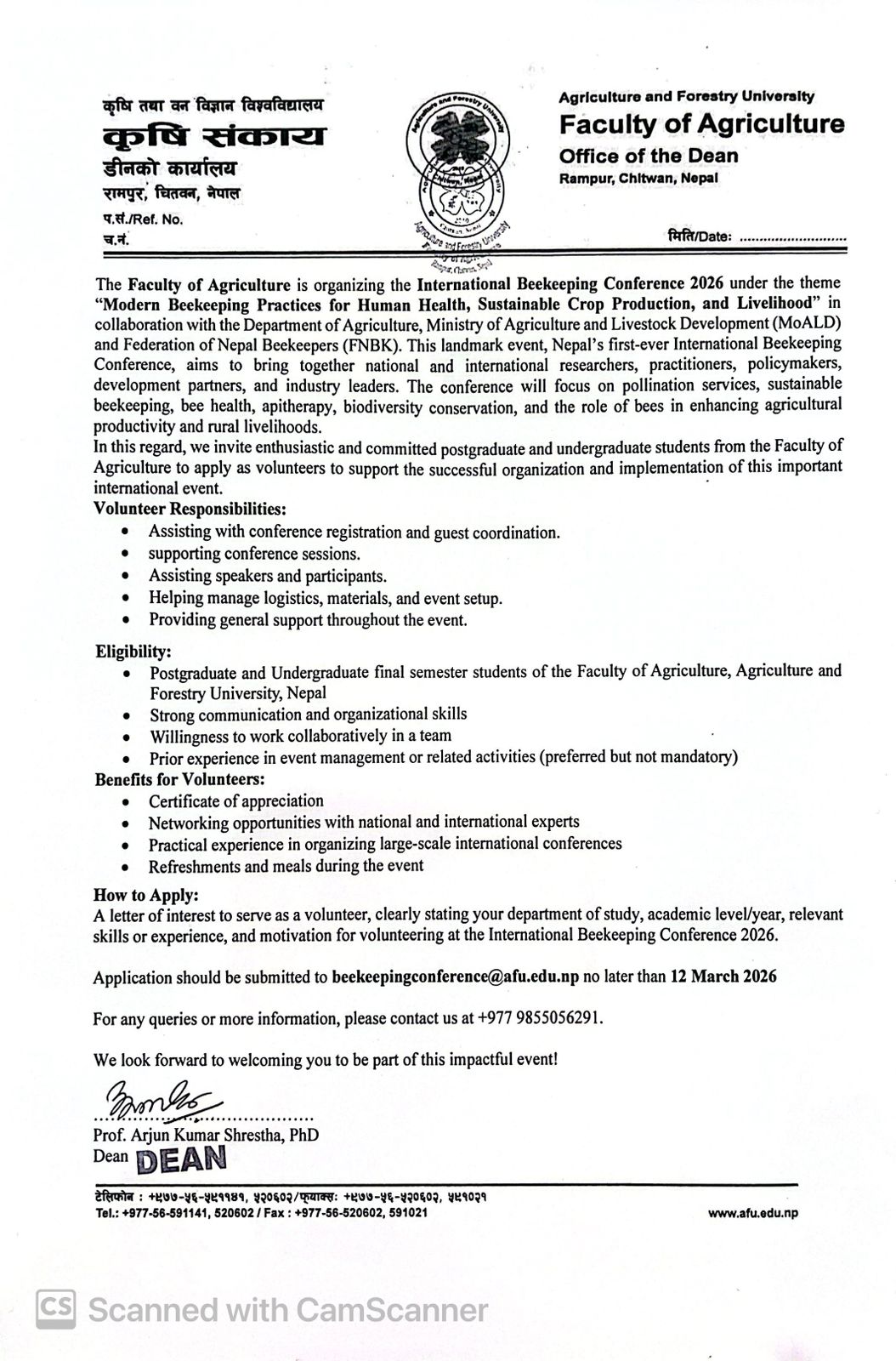 Call for Volunteers for International Beekeeping Conference 2026