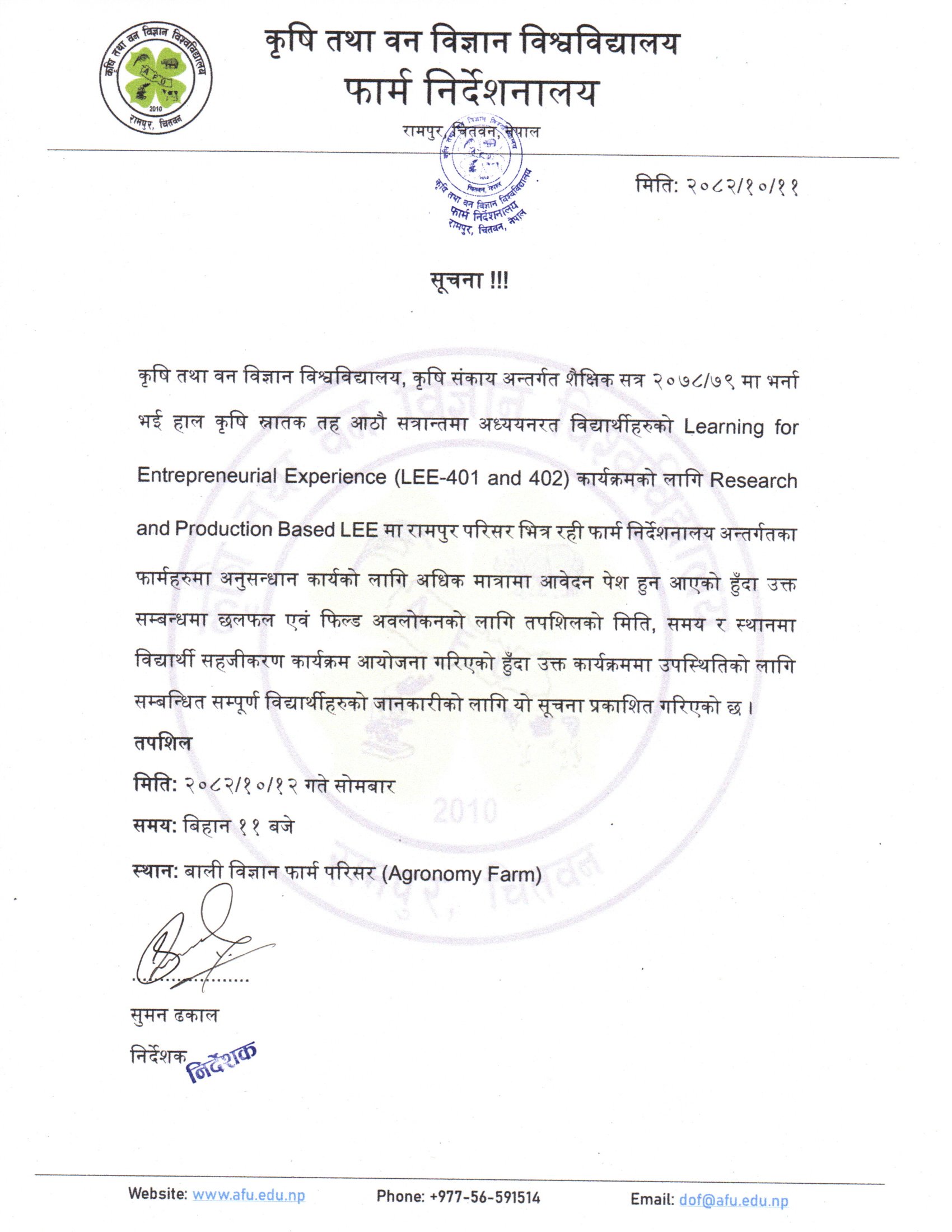 Class start and admission notice-b.sc.ag 6th semester academic year 2079/080