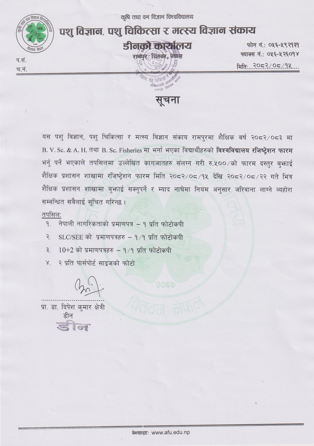 Notice regarding Course Registration of M.V.Sc., M.Sc. An. Sc., and M.Sc. Fisheries Fourth Semester