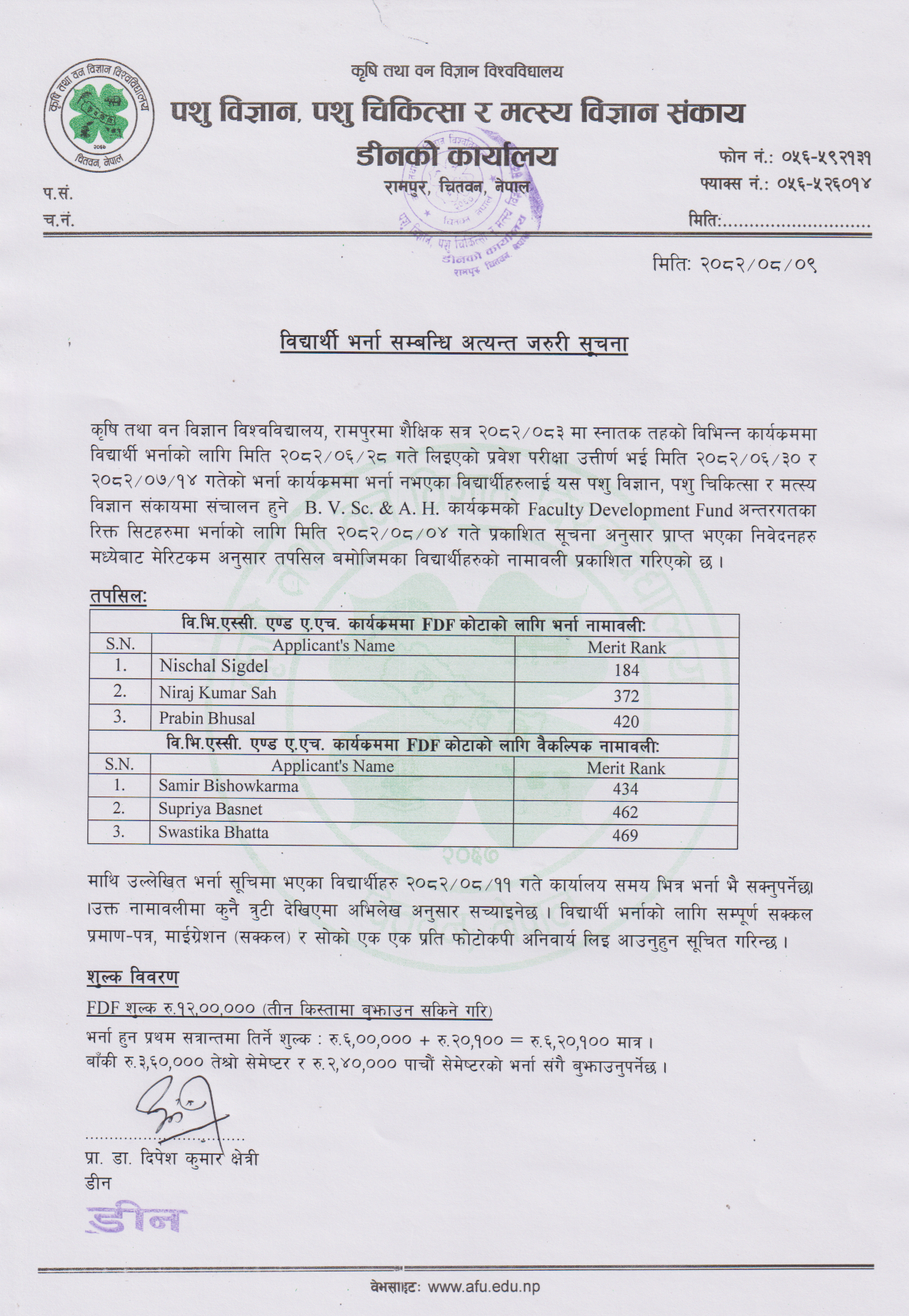 Admission Notice UDF 2nd List M.Sc. Forestry 2082