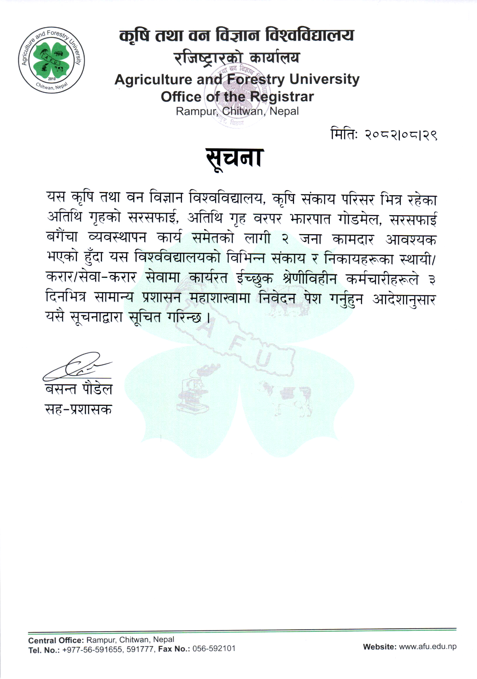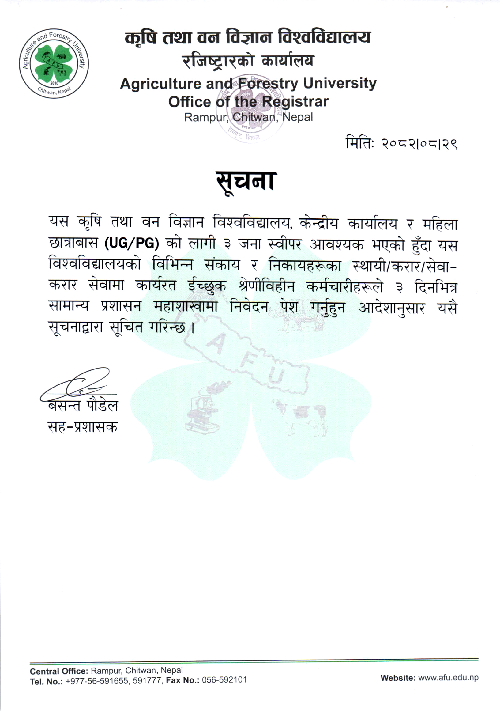 Admission Notice UDF 6th List M.Sc. Forestry 2082