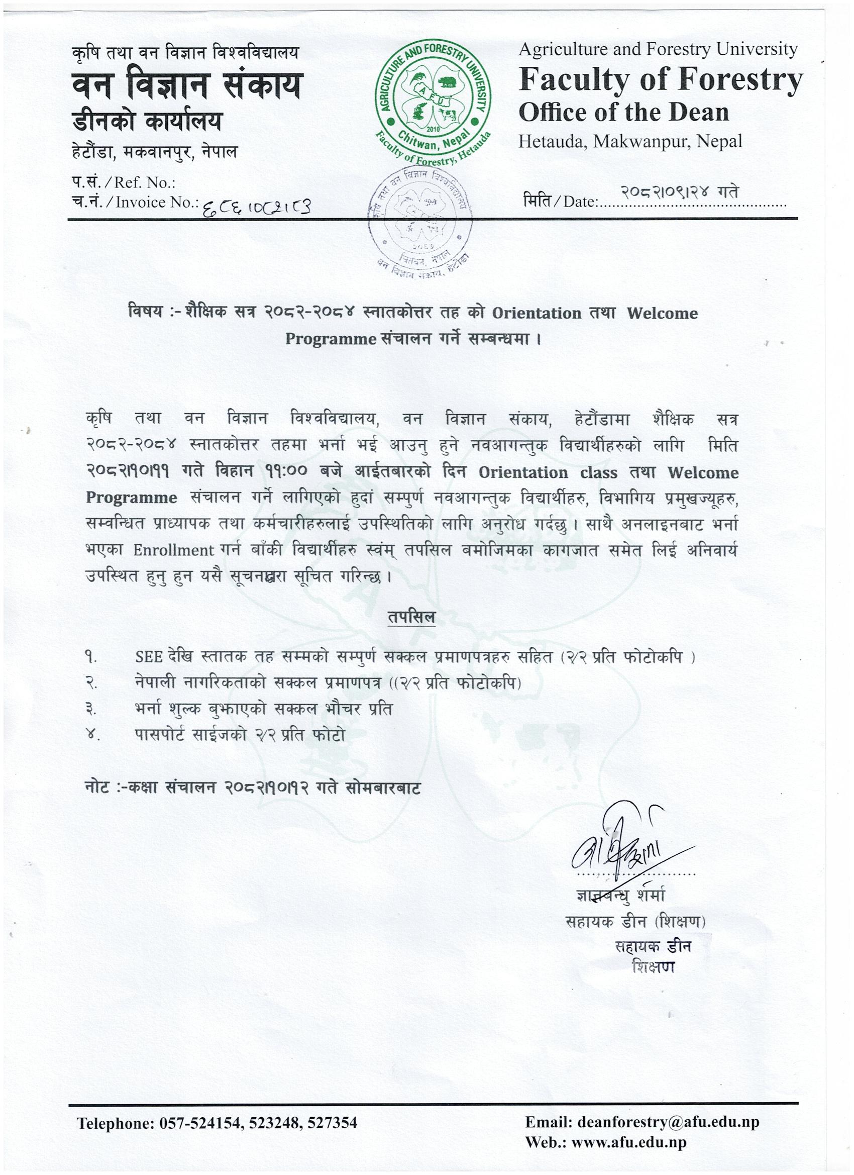 M.Sc. Forestry 2082-2084 Orientation Notice